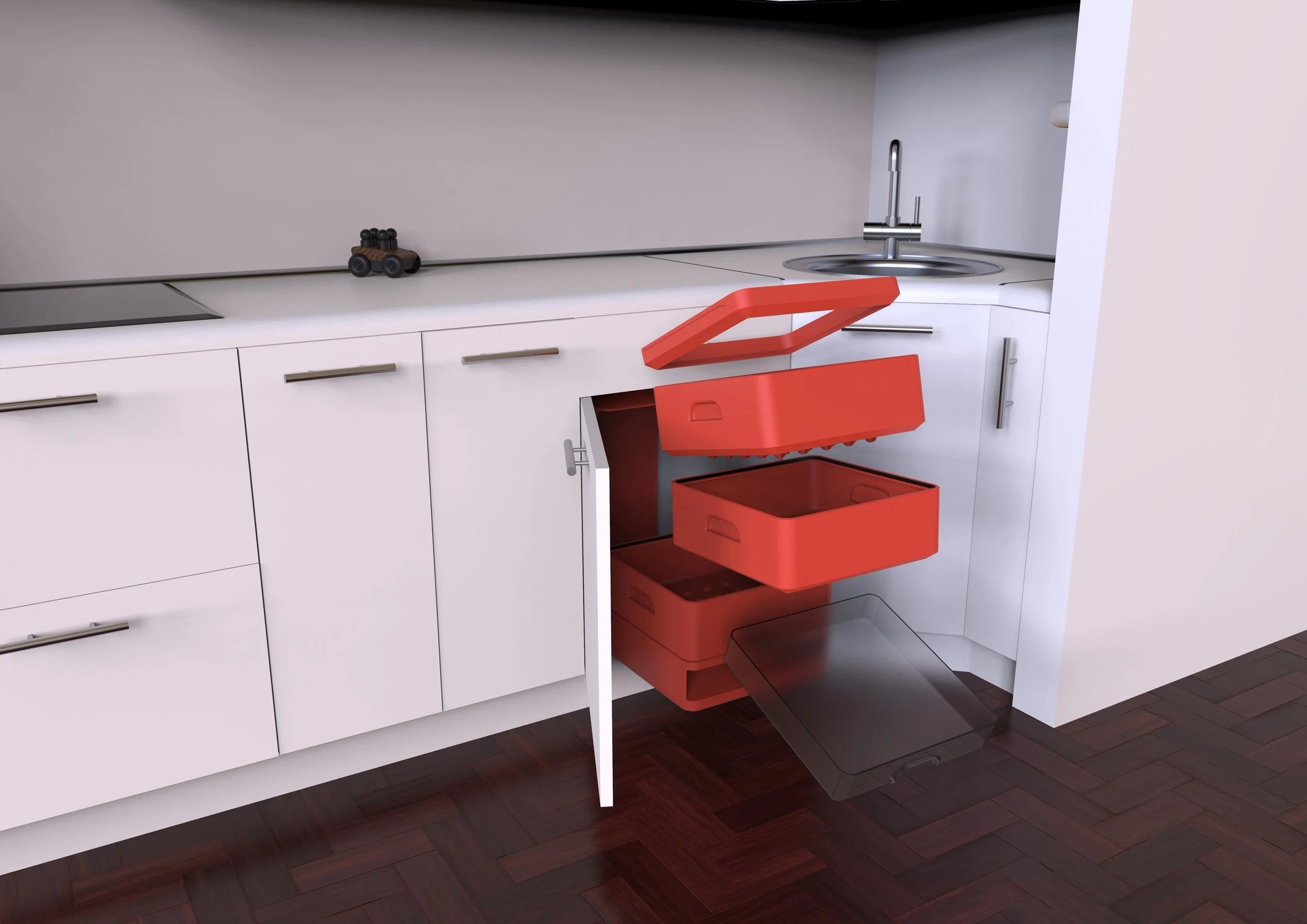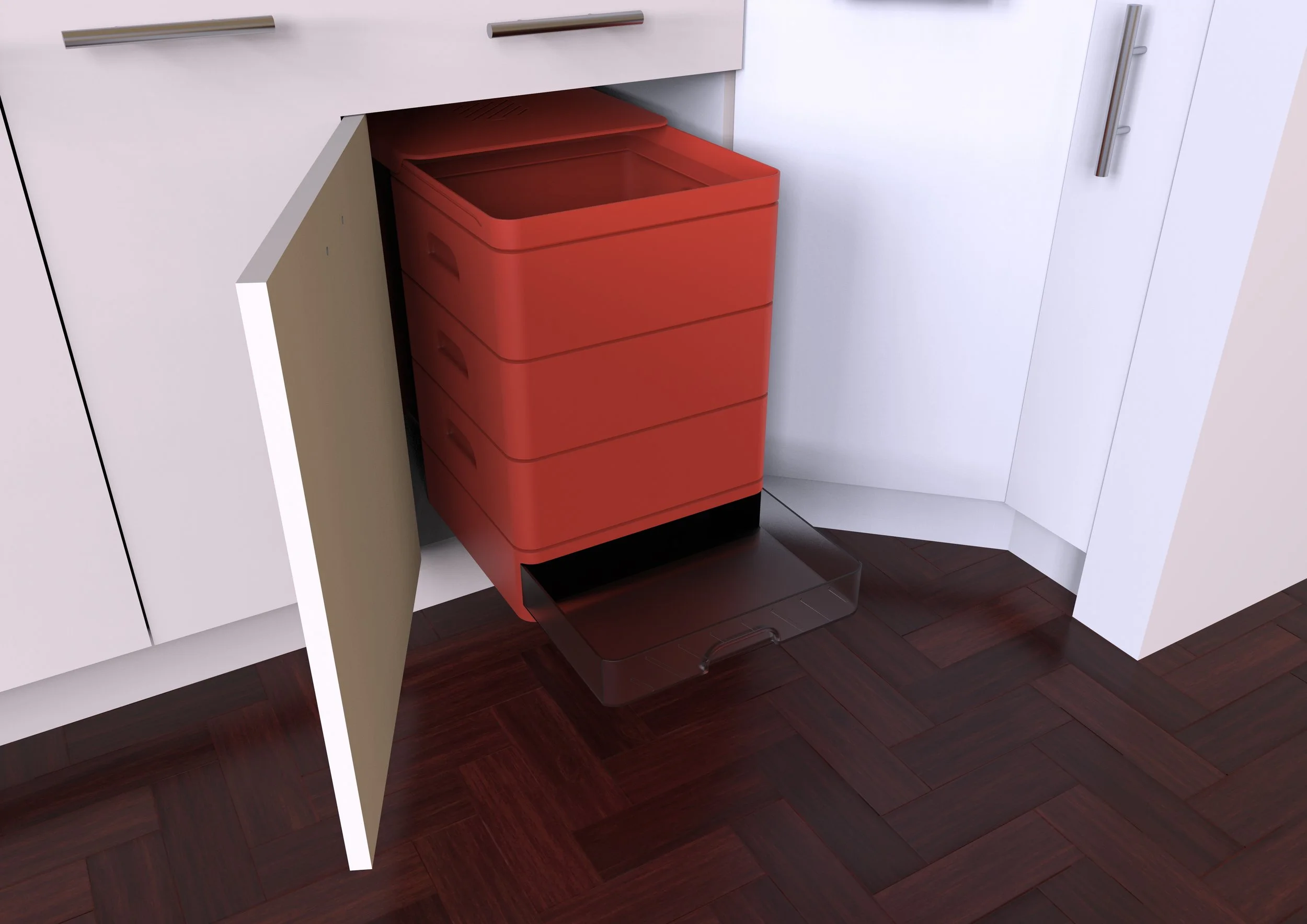 The design process began with exploring how to integrate worm-based composting into a modern kitchen environment. Early sketches focused on: